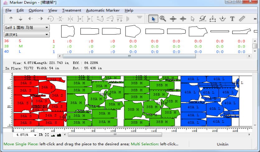 The useful marker tools assist users to handle various nesting requirement, like plaid and stripe, one way fabric, sectional markers, step marker etc. It can set the cutting sequence of the pattern, the position of starting point for cutting patterns, the cutting method (wavy or symmetrical cutting), etc.